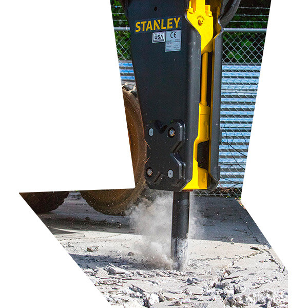 Stanley Concrete Breakers feature a modular design, allowing them to be mounted on Skid Steer Loaders, as well as a many Backhoes and Mini Excavators, with seamless transition between multiple machines. If you’re interested in additional mounting, please give us a call at 1-866-966-2538 for more details.