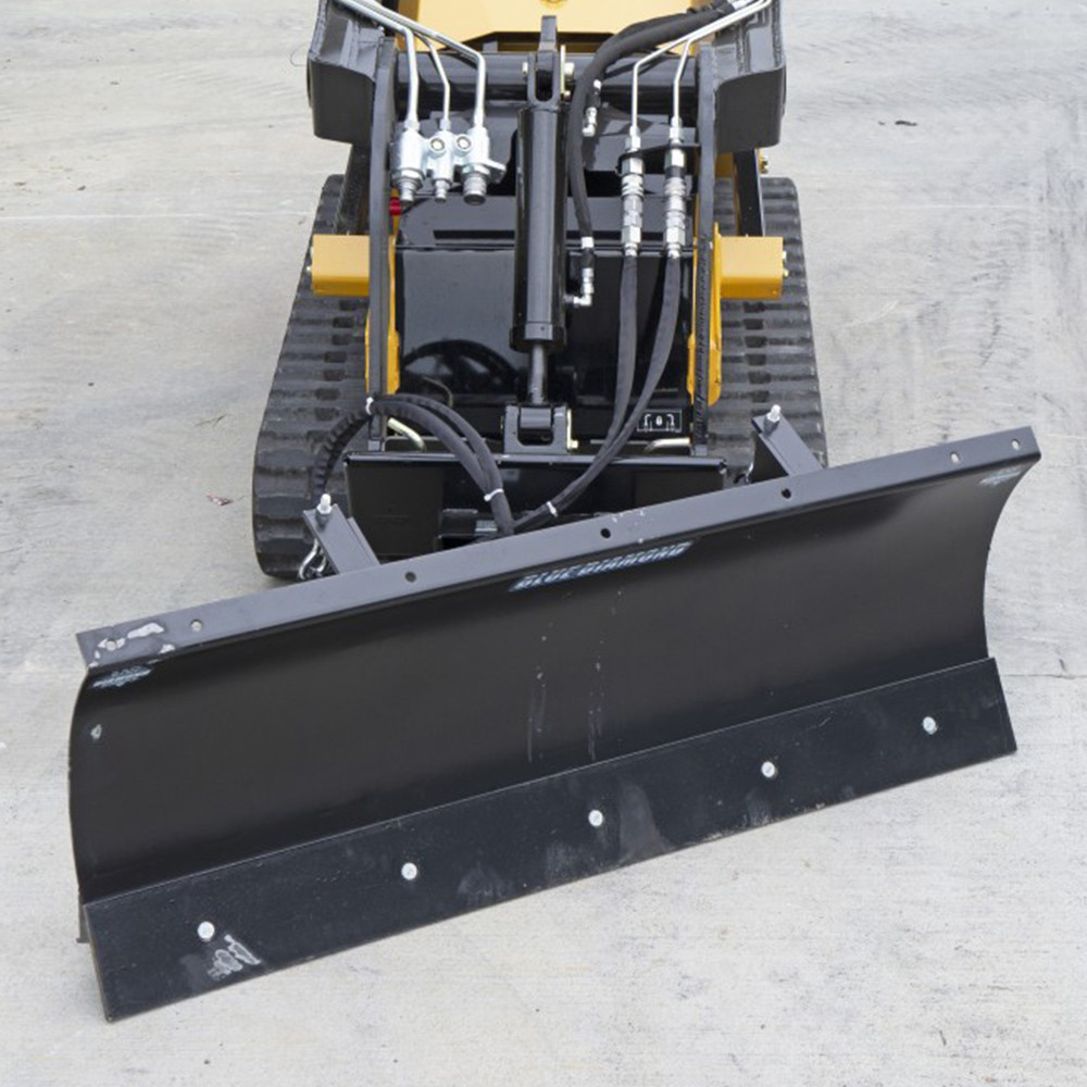 The Mini skid steer dozer blade is a versatile addition to any mini loader. This Blade is awesome in both dirt and snow, with features designed for both applications. The full trip blade can be locked out for dirt work, great for backfilling trenches and light grading. When it comes to snow removal, wear shoes and trip springs are included so this blade can perform in the winter elements. Available in 48″ and 60″ widths, the Mini Blade can also be selected in both Manual and Hydraulic Angle options. Take your mini loader to the next level, and perform dirt and snow work where larger machines can’t reach thanks to the Mini Blade from Blue Diamond.